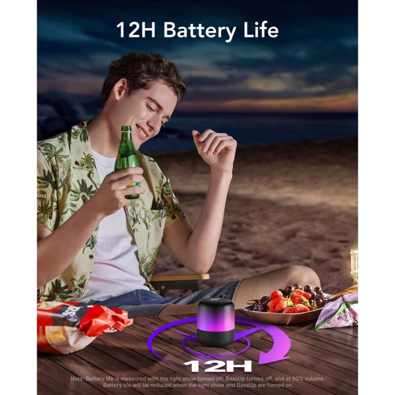 From hanging out with a couple of friends to a large backyard party, the Glow Mini Compact Wireless Speaker from Soundcore by Anker can play your favourite tracks with a fun, multi-colour light show.